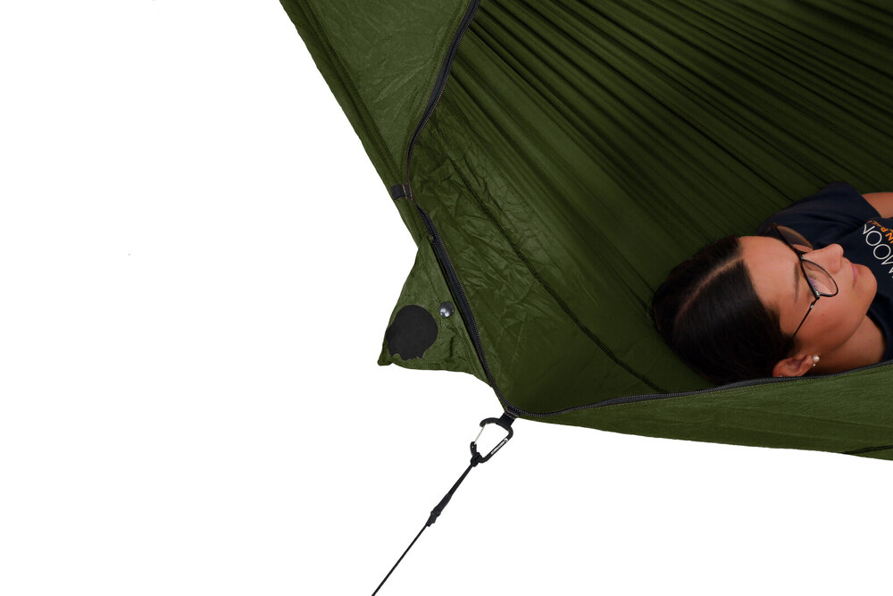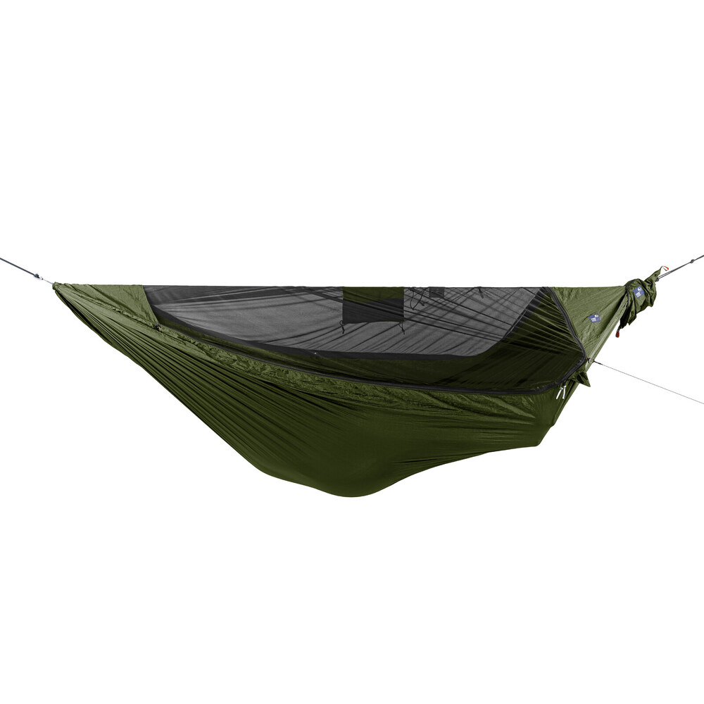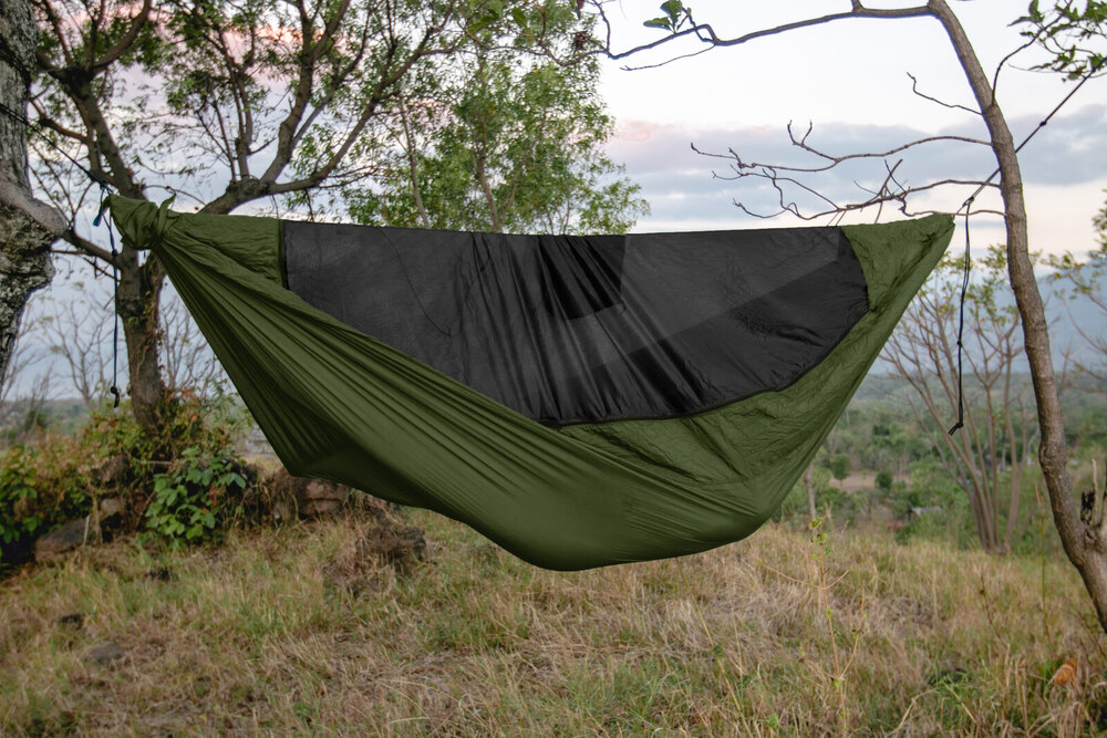 A legújabb a TTTM választékában a szúnyoghálóval egybeépített eredeti ejtőernyőselyemből készült túrafüggőágy. Könnyen használható megoldás a rovarvédelem mellett történő szabadban alváshoz. A kényelem és a funkcionalitás maximalizálva, a tömeg pedig minimalizálva.